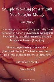 Funeral thank you notes for money.